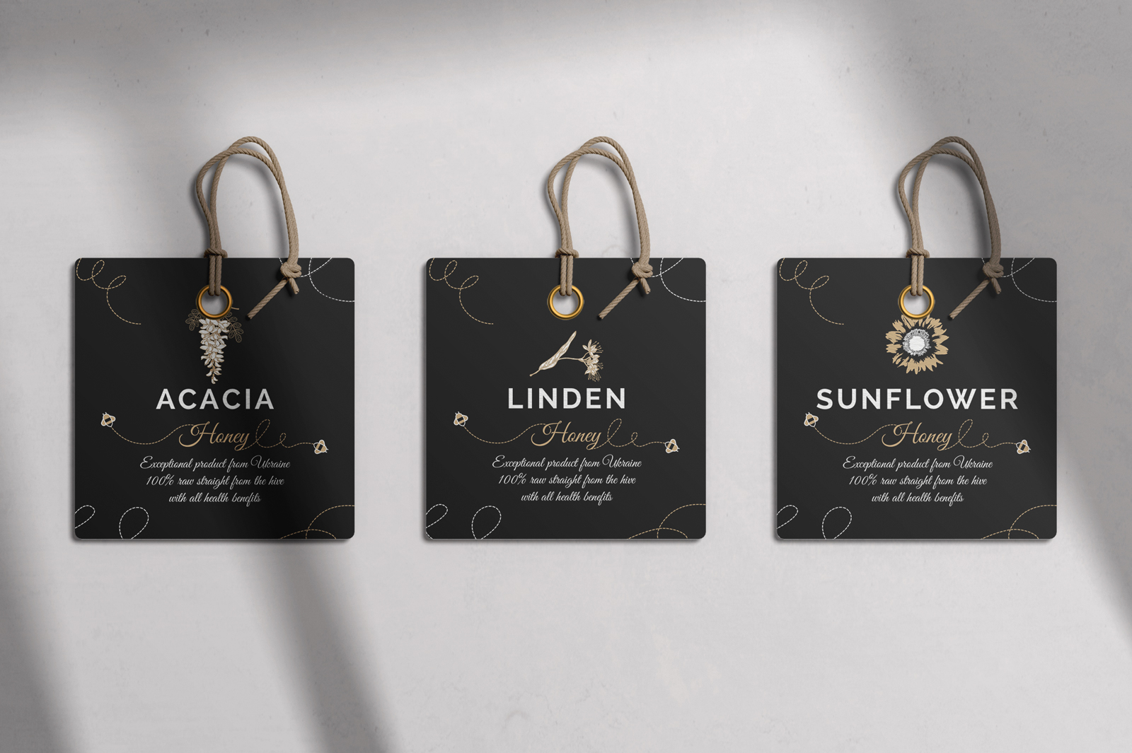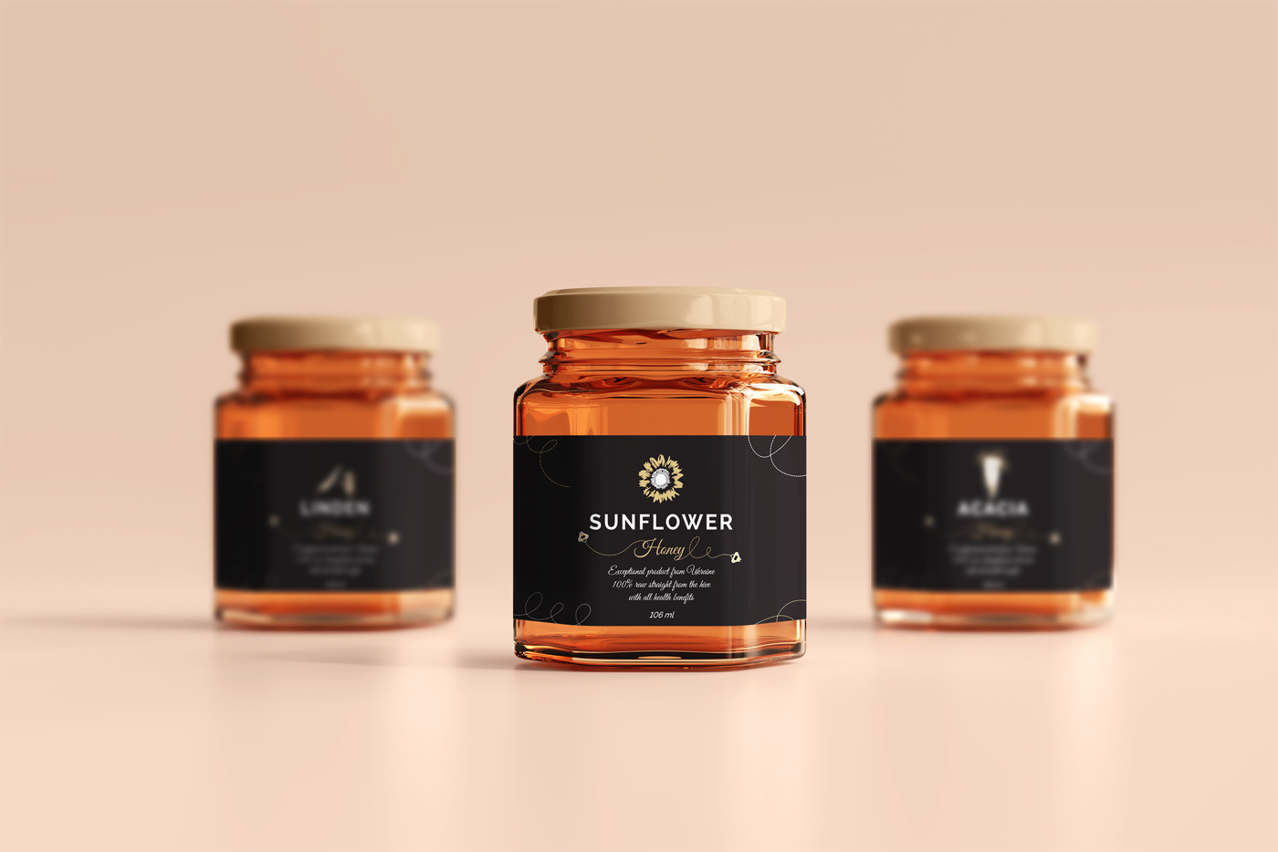 Choosing the color of the visual identity is again tied to the honey itself and the client’s desire for the logo to be elegant. In order to avoid the traditional yellow color of honey, we decided on a more golden color. The golden color is a good representative of honey and has the sophistication that the client wanted to convey.
