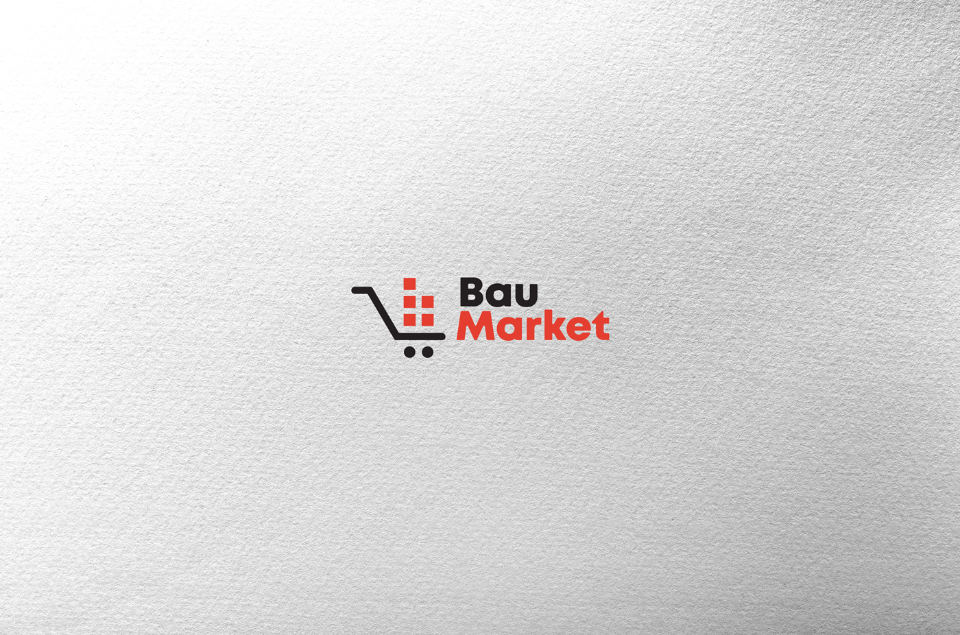 Pored vizualnog simbola, tekstualni prikaz imena tvrtke dodatno pojačava prepoznatljivost i identitet. Odlučili smo se za kontrastne boje: “Bau” u crnoj boji iznad, a “Market” u crvenoj boji ispod. Ovaj kontrast ističe svaki dio imena tvrtke te dodaje dinamiku cjelokupnom dizajnu.
