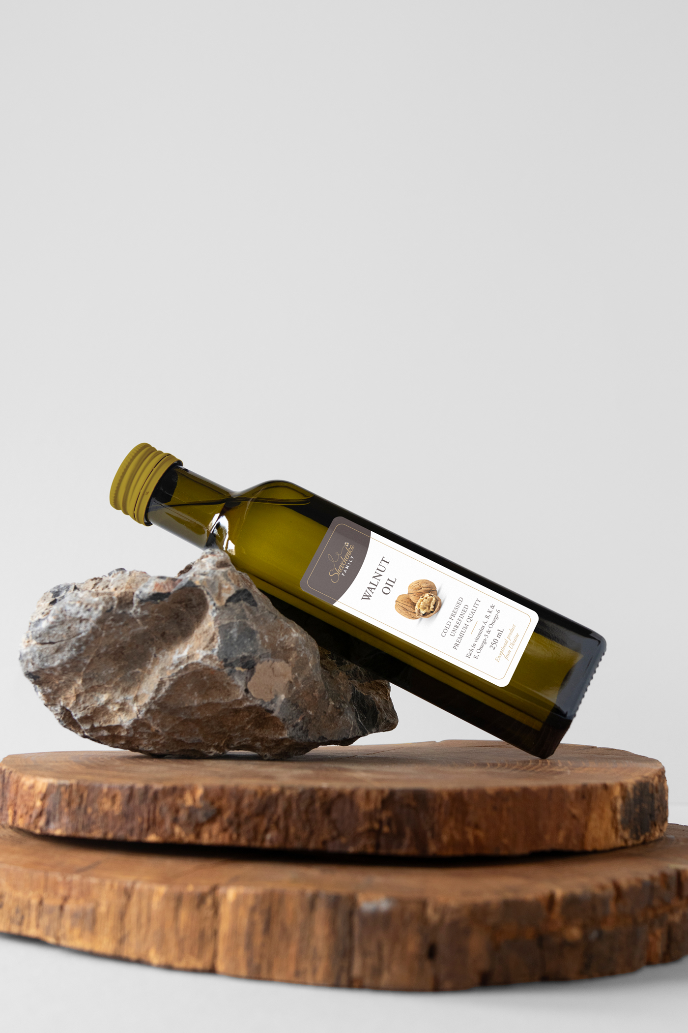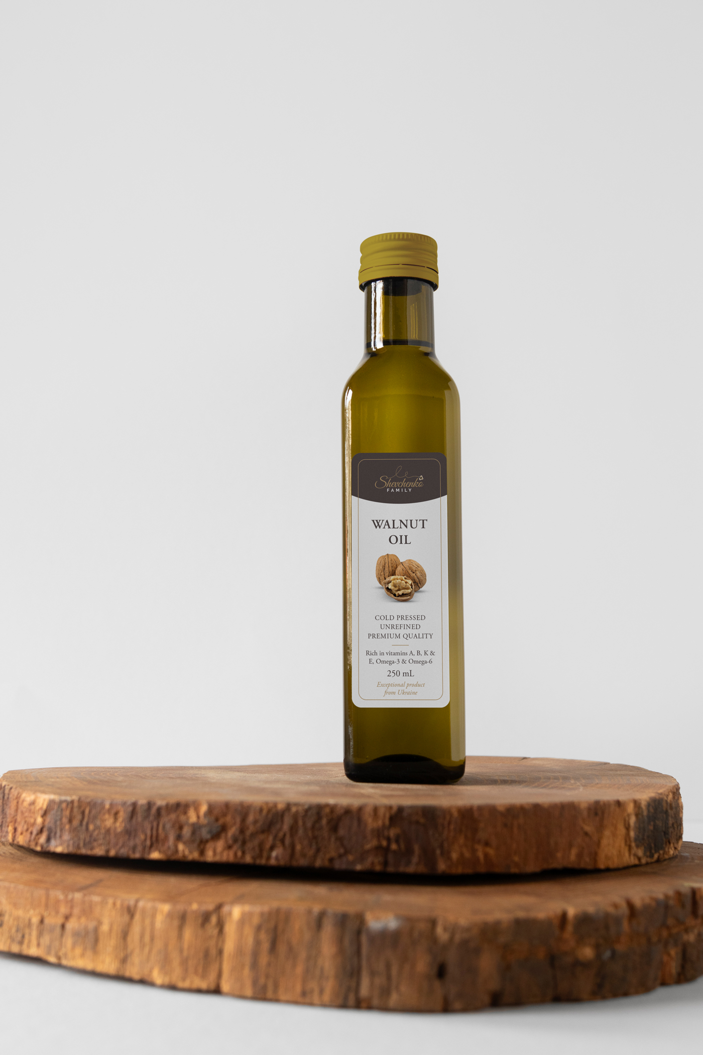 Shevchenko je mala obiteljska tvrtka iz Ukrajine koja je započela s proizvodnjom ulja od oraha i bučinih sjemenki kao dodatak već postojećim proizvodima poput meda. Kao mali obrtnici na tržištu, odlučili su predstaviti svoje prve proizvode kroz jednostavan i moderan dizajn etikete. U suradnji s klijentima, radili smo na izradi etikete koja na jasan način prenosi informacije o proizvodu te pomaže u uspostavljanju prvih koraka na konkurentnom tržištu.